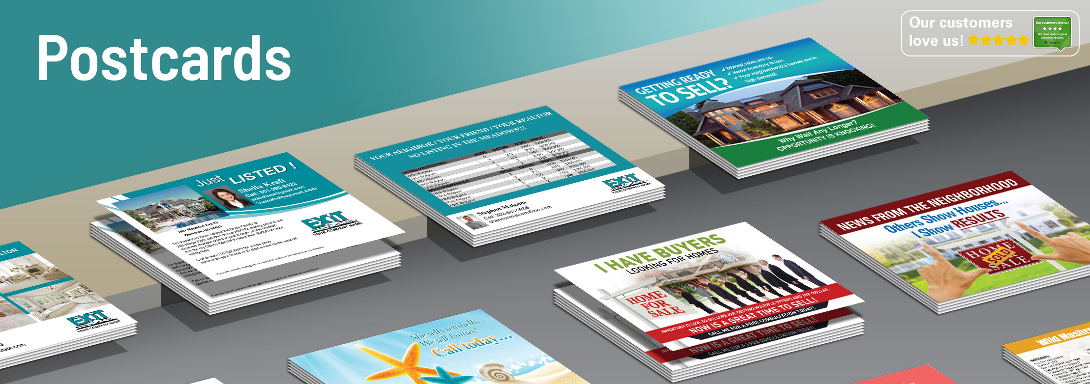 Welcome to your real estate marketing resource. Here, you'll find real estate postcards and several other products to promote your brand and services, all under one roof. The name paired with our popular line of folded note cards, door hangers and bookmarks is a win-win proposition. Our easy design system guides you through every step for creating your own personalized real estate marketing tools. When you distribute the quality products you design with us, you'll look like a pro. We're here to make you look great!
