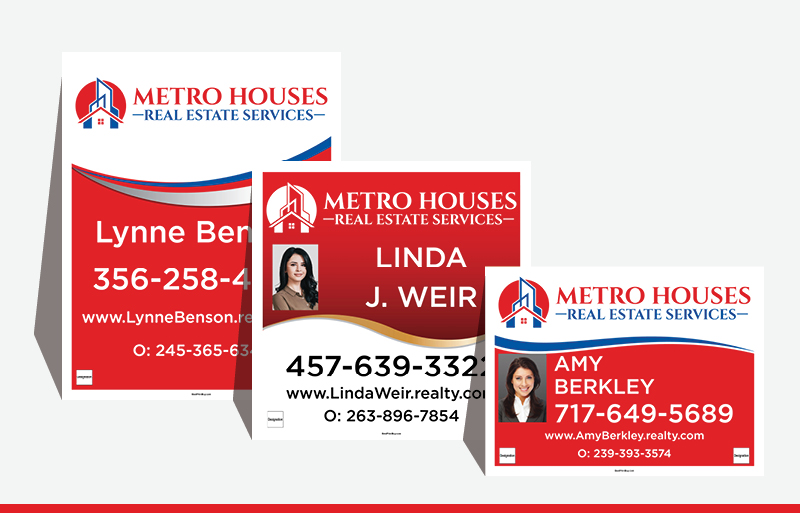 Nothing grabs attention like a Metro Houses Real Estate Services Real Estate yard sign. Whether it’s interested buyers driving around their dream neighborhoods or looky-loos stopping in to check out an open house, an eye-catching real estate yard sign is the best way to capture the attention of people who are in the market and ready to buy. Our simple designs and one-step process make BestPrintBuy.com the perfect choice for all your real estate marketing needs.