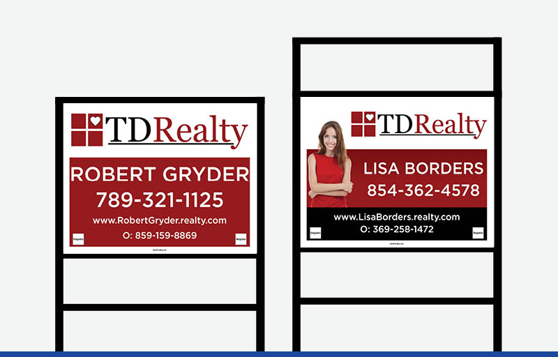 Nothing grabs attention like a TDRealty Real Estate yard sign. Whether it’s interested buyers driving around their dream neighborhoods or looky-loos stopping in to check out an open house, an eye-catching real estate yard sign is the best way to capture the attention of people who are in the market and ready to buy. Our simple designs and one-step process make BestPrintBuy.com the perfect choice for all your real estate marketing needs.